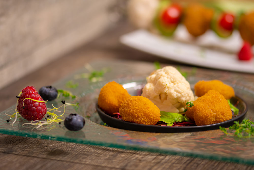 Unsere Finger Food Snacks: Panierte Champignons und Panierte Blumenkohlröschen - vegetarisch, knackig, lecker.